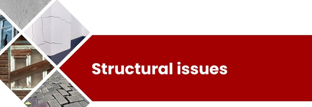 • Water damage in bathrooms, kitchens, and foundations.